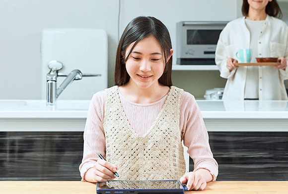 「中学講座」でご使用いただけるタブレットは学習専用に作られたタブレットです。お子さまがインターネットを使用することができない設計なので、脱線せず学習に集中できます。