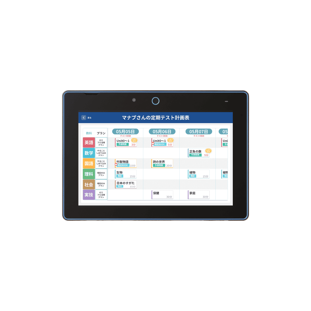 やることがひと目でわかる「お子さま専用の学習プラン」を提案! 通っている中学校のテストに出やすい問題を優先的に対策できるから、効率よく高得点が狙えます。