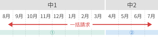 例:中学1年生 8月号開始で12か月一括払いの場合