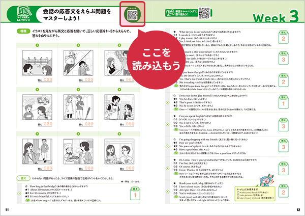 テキストの二次元コードを読み込んで、問題に取り組もう。