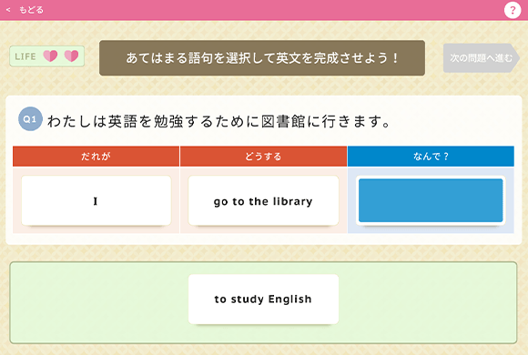 ニガテになりやすく入試にも出やすい「to+動詞の原形」をゲーム感覚で直感的に理解することができます。