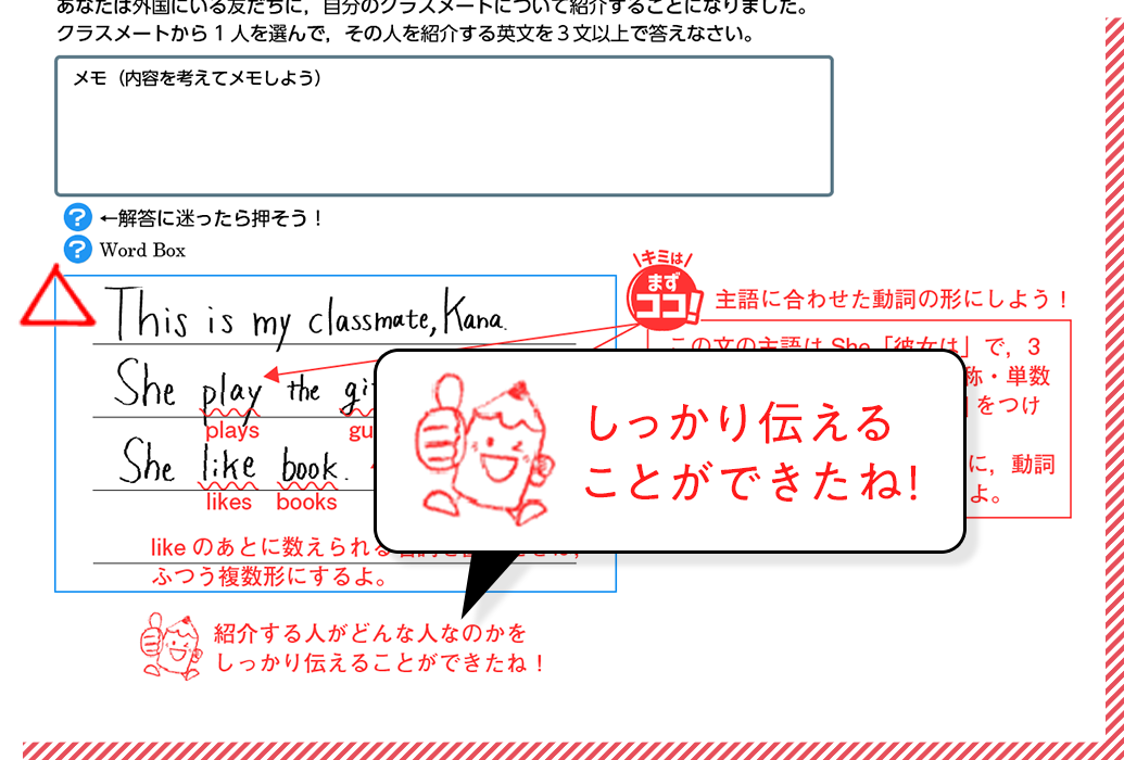 今回のテストで赤ペン先生がどう書けば良いのかを丁寧に教えてくれたので