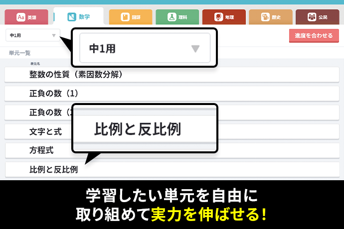 中1〜3範囲を、いつでも何度でも好きなだけ取り組める!