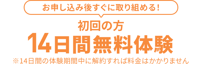 いいえ、14日間の無料体験期間中に解約のご連絡をいただいた場合、料金は一切かかりません。