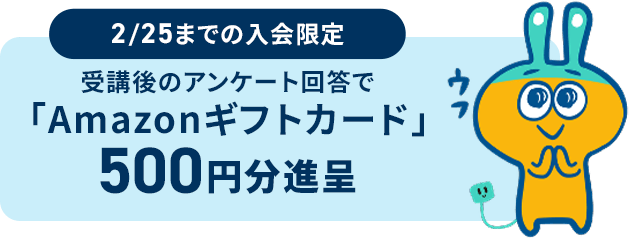 2/25までにご入会いただき、受講後にアンケートへご回答いただいた方が対象